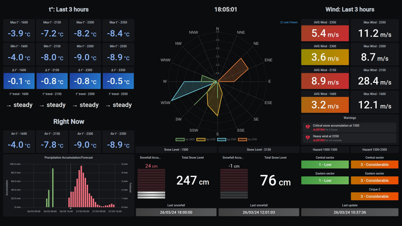Данные метеостанций и снегомерных реек, расположенных на нашем курорте Красная Поляна, будут доступны на телеграмм канале лавинной службы https://t.me/avalanchepatrol_kp (там же в закрепленных сообщениях есть карта расположения). Полноценно все будет работать ближе к сезону, я надеюсь (ноябрь-декабрь).