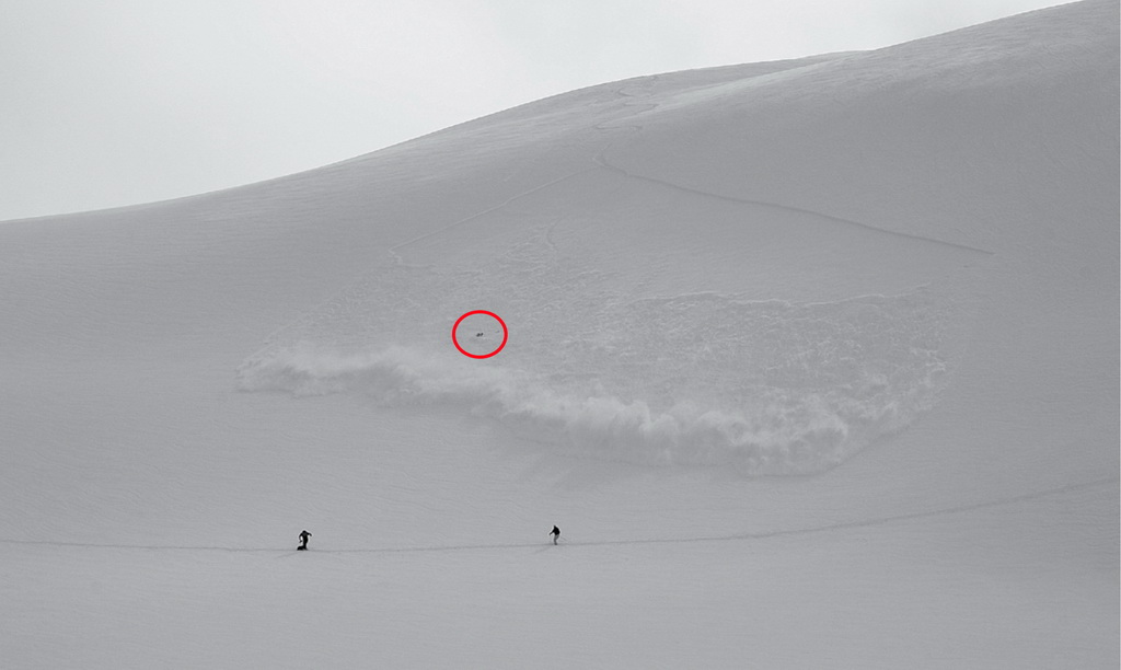 Если вы спровоцируете сход лавины, стоя посреди лавиноопасного участка (или на неподвижном снегоходе), у вас практически нет шансов выбраться из движущейся лавины. Именно поэтому лыжные патрульные и Heli-ski гиды годами используют так называемые «Ski-cut» как эффективный приём, снижающий вероятность попадания в лавину. Идея заключается в том, что если вы спровоцировали сход лавины, вам нужно набирать скорость и направляться к островку безопасности, чтобы, теоретически, если склон разрушится, ваш импульс унес вас с движущейся лавины. Если первый человек просто нырнёт в зону схода лавины, и лавина сорвётся, его возможности очень ограничены. Поэтому первый, кто идёт по склону, всегда должен отрабатывать «Ski-cut».