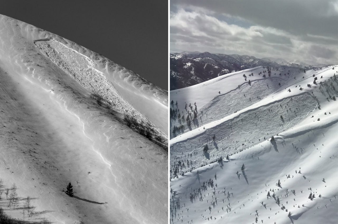 Если вы наблюдаете на склонах недавно сошедшие лавины (линии отрыва, лавинные выносы), это самый верный признак лавинной опасности к этому следует отнестись очень серьезно. Примите дополнительные меры предосторожности, особенно, если следы схода лавин находятся на той же высоте и в той же экспозиции, по которой вы хотите произвести спуск, подъем и тп.